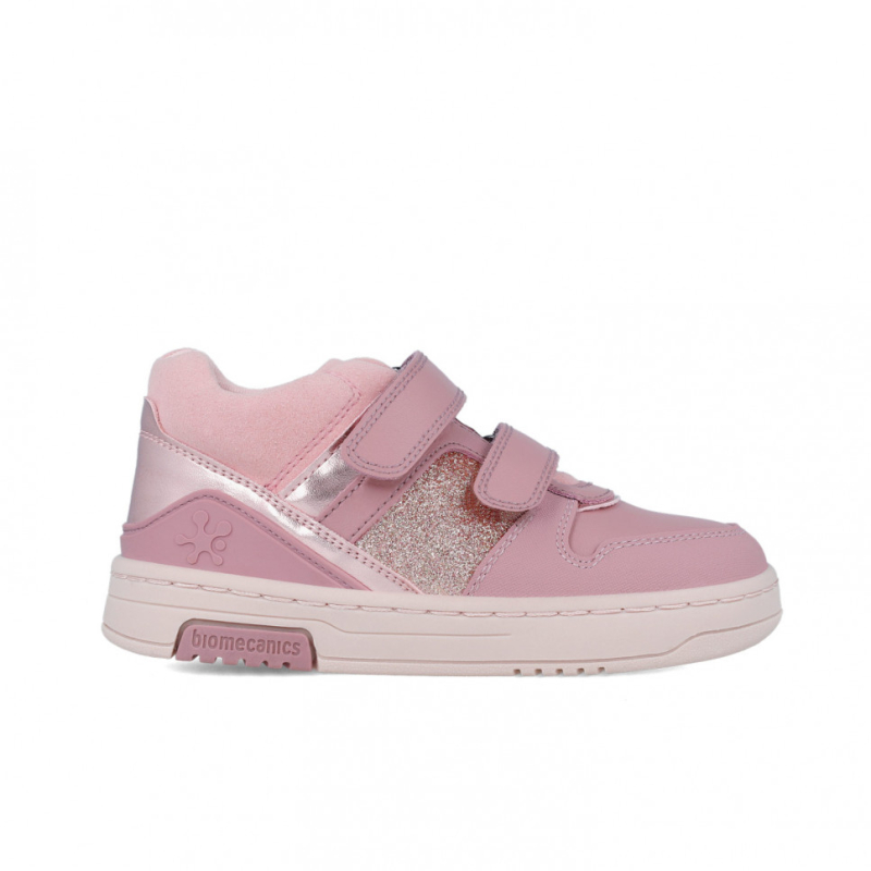 Botín de piel en color rosa, Cierre con dos velcros y puntera reforzada.