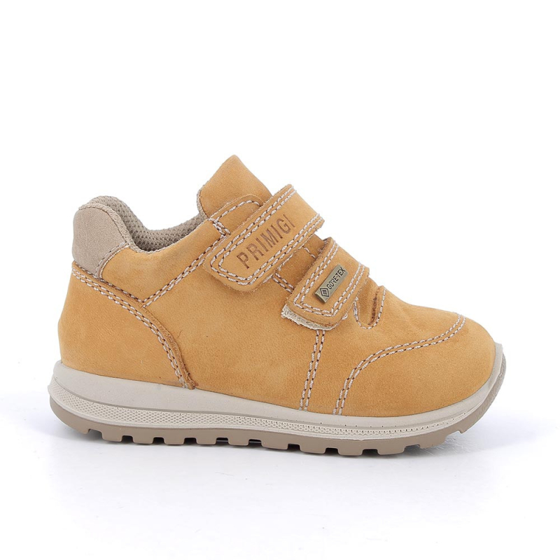 Zapato deportivo de piel en color camel con Gore-Tex. Cierre con dos velcros