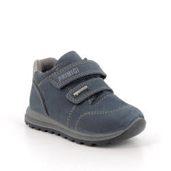 Zapato deportivo de piel en color azul marino con Gore-Tex. Cierre con dos velcros