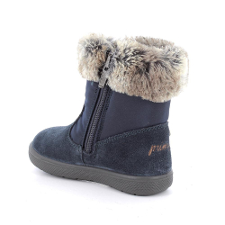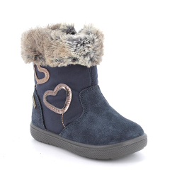 Botín con Gore- Tex en color azul marino con detalles de corazones, cierre con cremallera lateral. El pie apoya en una confortable plantilla que puede extraerse para una mayor higiene.