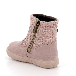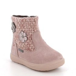 Botín con Gore- Tex en color rosa con detalles de flores, cierre con cremallera lateral. El pie apoya en una confortable plantilla que puede extraerse para una mayor higiene.