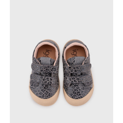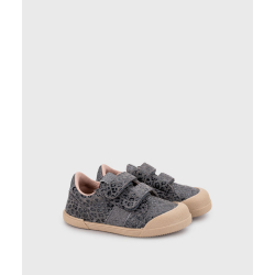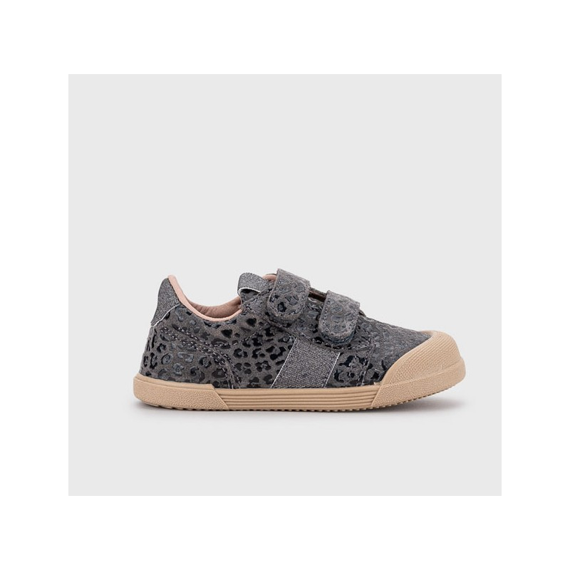 Deportivos de piel antracita con grabados animal print casual de concepto barefoot, cero drop, flexible y blandito, plantilla extraíble y cierre adherente para mayor ajuste y autonomía.