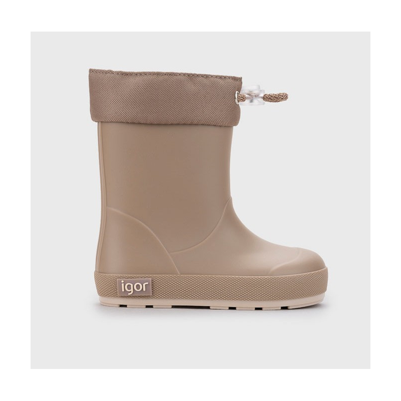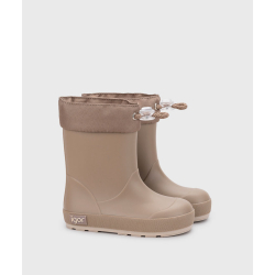 Bota de agua color taupe con acabado mate, de concepto barefoot medium, cero drop, flexible, blandita, con cuello ajustable y plantilla extraíble.