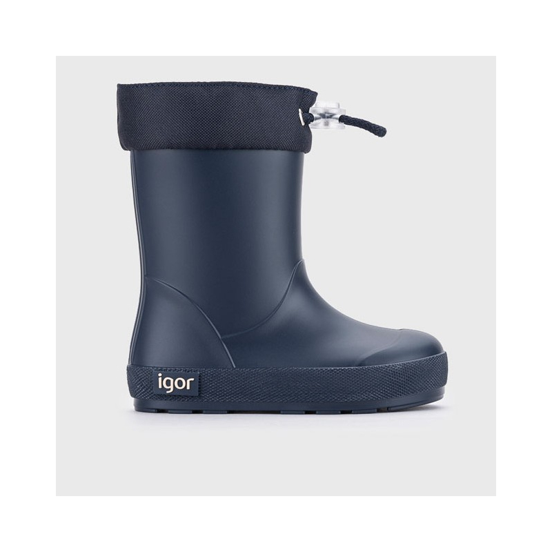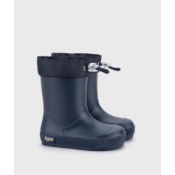 Bota de agua color azul marino con acabado mate, de concepto barefoot medium, cero drop, flexible, blandita, con cuello ajustable y plantilla extraíble.