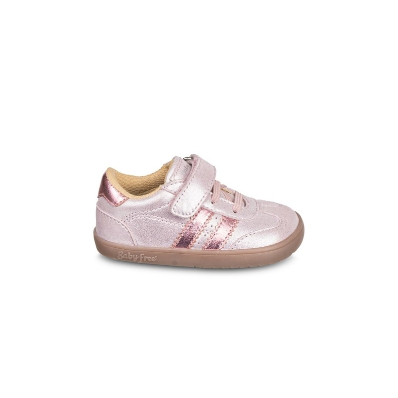 Deportiva de piel en color rosa metalizado, con cierre en un velcro.