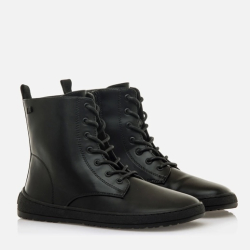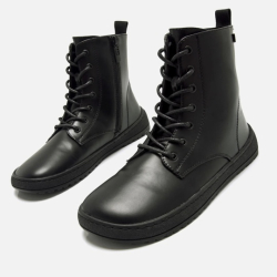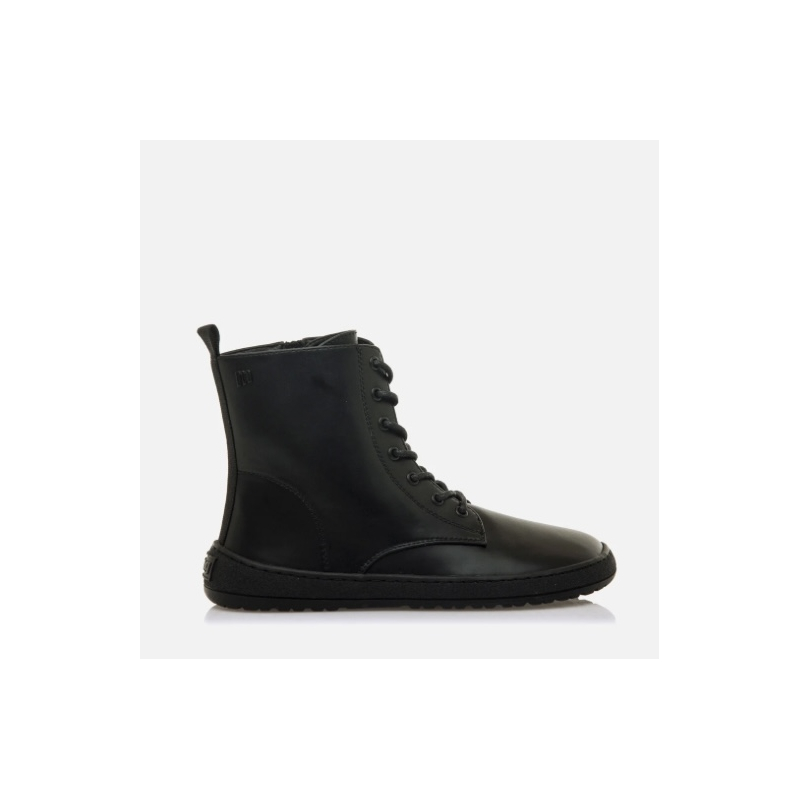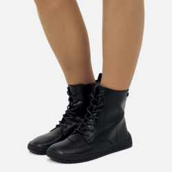 Botines militares de color negro para mujer de Mustang, modelo Free Alask. Destaca por su caña media con cierre de cordones y cremallera lateral, facilitando el ajuste y el calce. Se trata de un calzado minimalista que gracias a su puntera ancha, suela totalmente plana (cero drop) y flexibilidad, mejora la anatomía del pie y favorece una mejor posición del mismo.