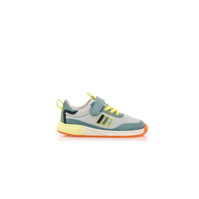 Deportiva Barefoot de color gris-azul, cierre con velcro.