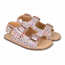 Sandalia barefoot confeccionada íntegramente en piel natural tanto en el exterior como en el forro interior, lo que aporta suavidad, transpirabilidad y mayor durabilidad. Este modelo presenta un diseño tipo bio. Incorpora tres tiras con hebillas metálicas regulables, que permiten un ajuste personalizado en el empeine y el tobillo.